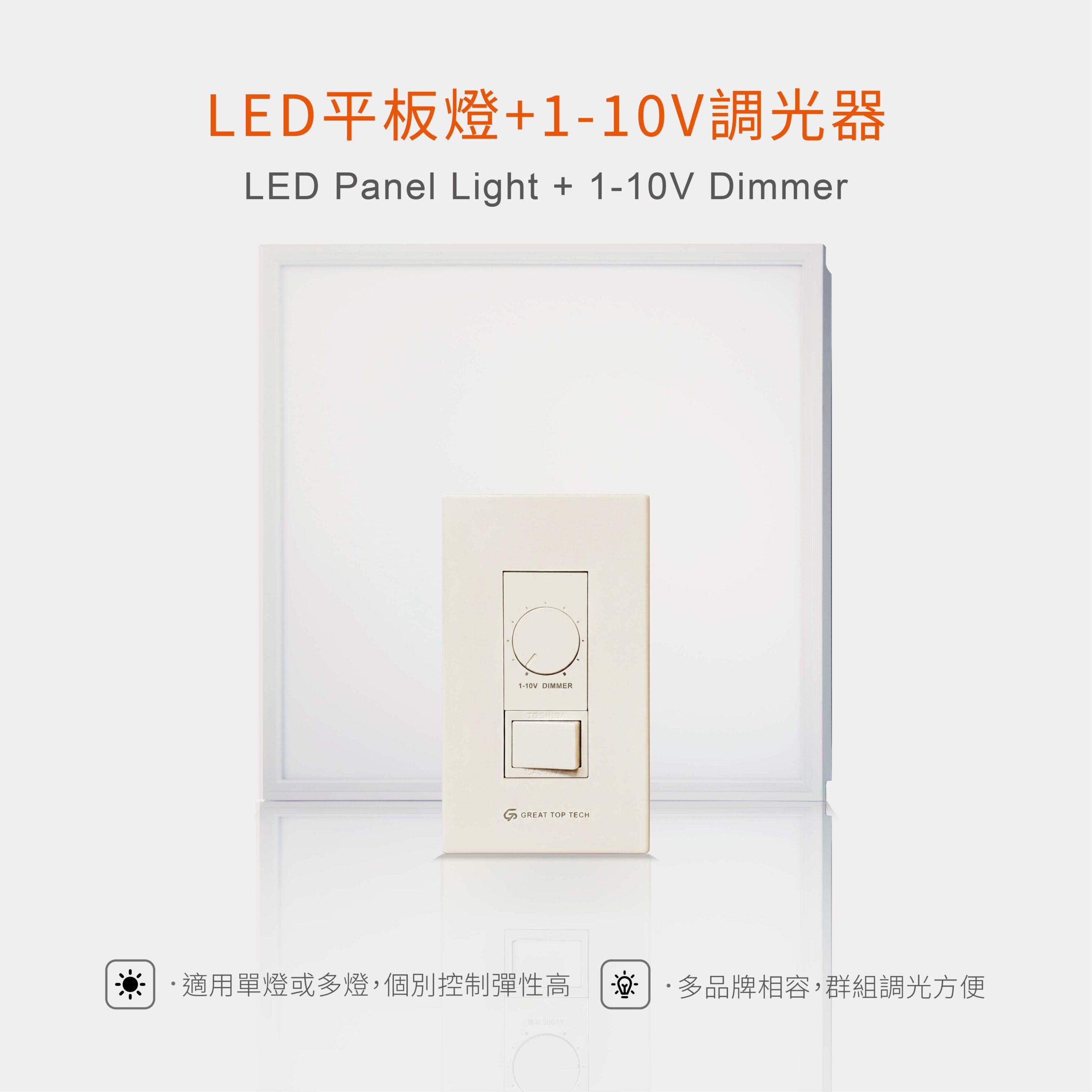 最佳化匹配,確保系統相容性與穩定性。經過嚴格測試, 與 Greattop LED 平板燈完美搭配,保證最佳調光效果與使用壽命。