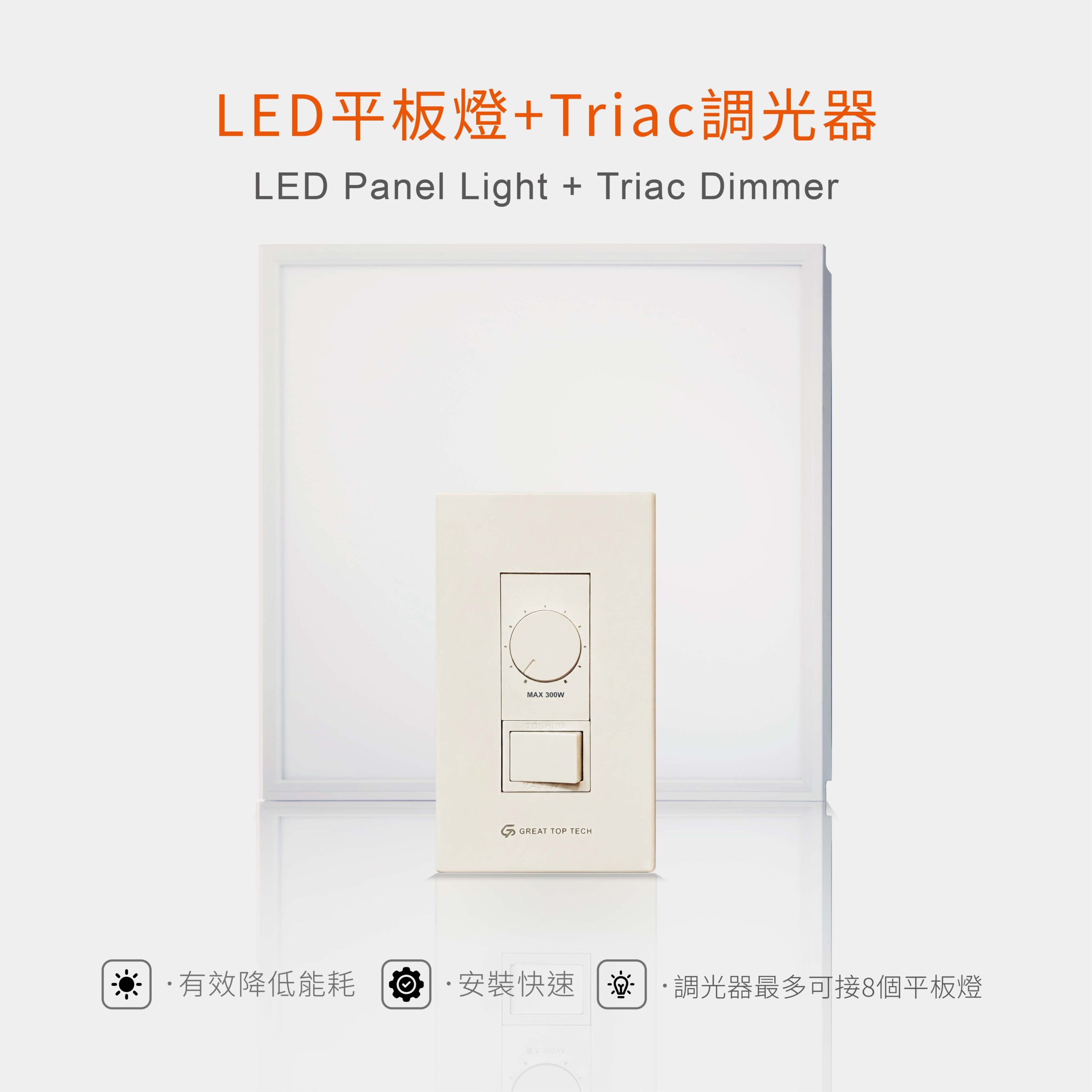 結合超薄 LED 平板燈與 Triac (可控矽) 調光技術。無須重新佈線, 可直接沿用既有的牆面旋鈕開關調整亮度,是辦公室與商業空間節能升級的最佳選擇。